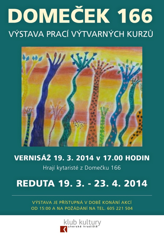 Výstava prací účastníků výtvarných kurzů Domečku 166 se koná v přízemí Reduty od 19. března do 20. dubna 2014.