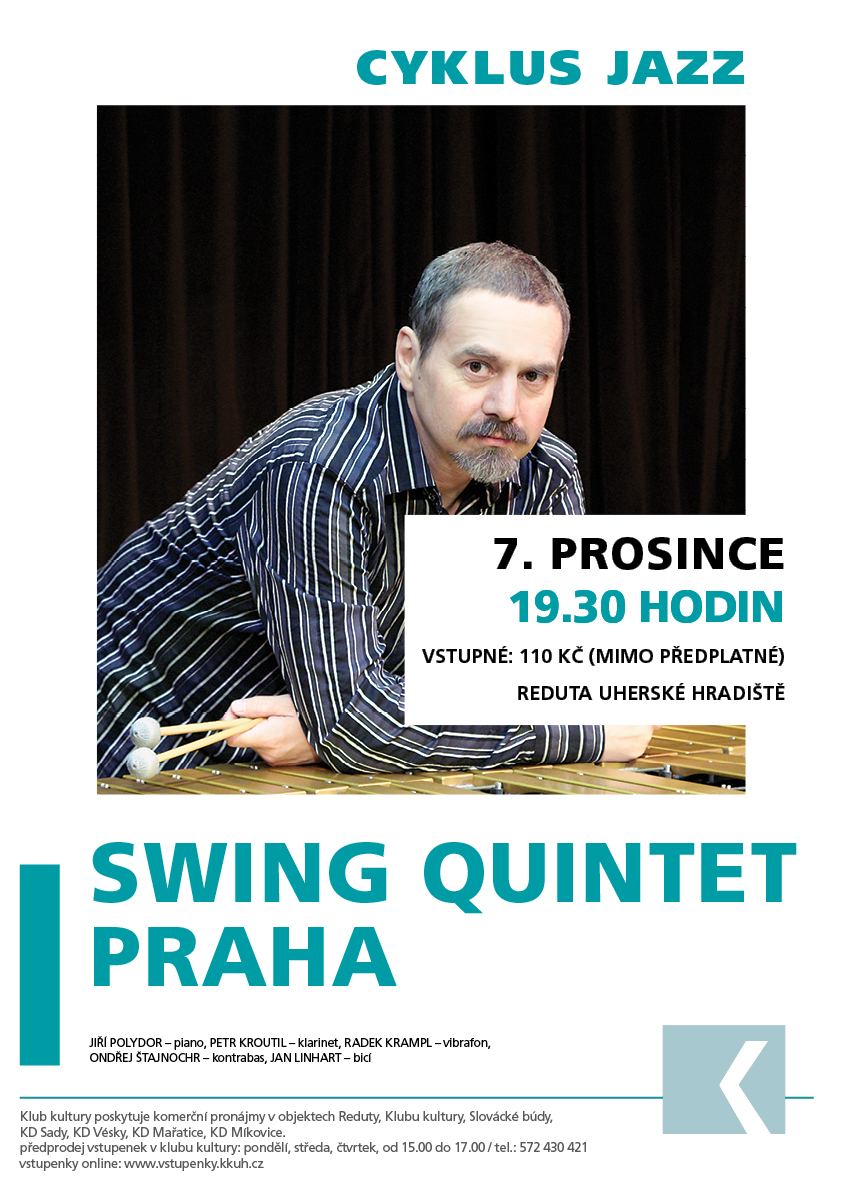 Swing Quintet Praha je spojení vynikajících hudebníků. Tvoří jej klarinetista Jiří Kudrman, vibrafonista Radek Krampl, kontrabasista Ondřej Štajnochr, bubeník Jan Linhart a místo stálého pianisty Milana Dvořáka bude hrát známý swingař Jiří Polydor. Tito jazzmani svým vystoupením připomenou odkaz slavného kolegy, legendárního jazzového bubeníka Ivana Domináka, který s touto formací vystupoval až do konce roku 2013, kdy podlehl těžké nemoci. Na jeho místo právě nastoupil lektor Konzervatoře Jaroslava Ježka Jan Linhart, dřívější absolvent této školy. Swing Quintet hraje swingový mainstream a jeho vzorem je stejná formace, se kterou hrál určitý čas i „král swingu“ Benny Goodman.