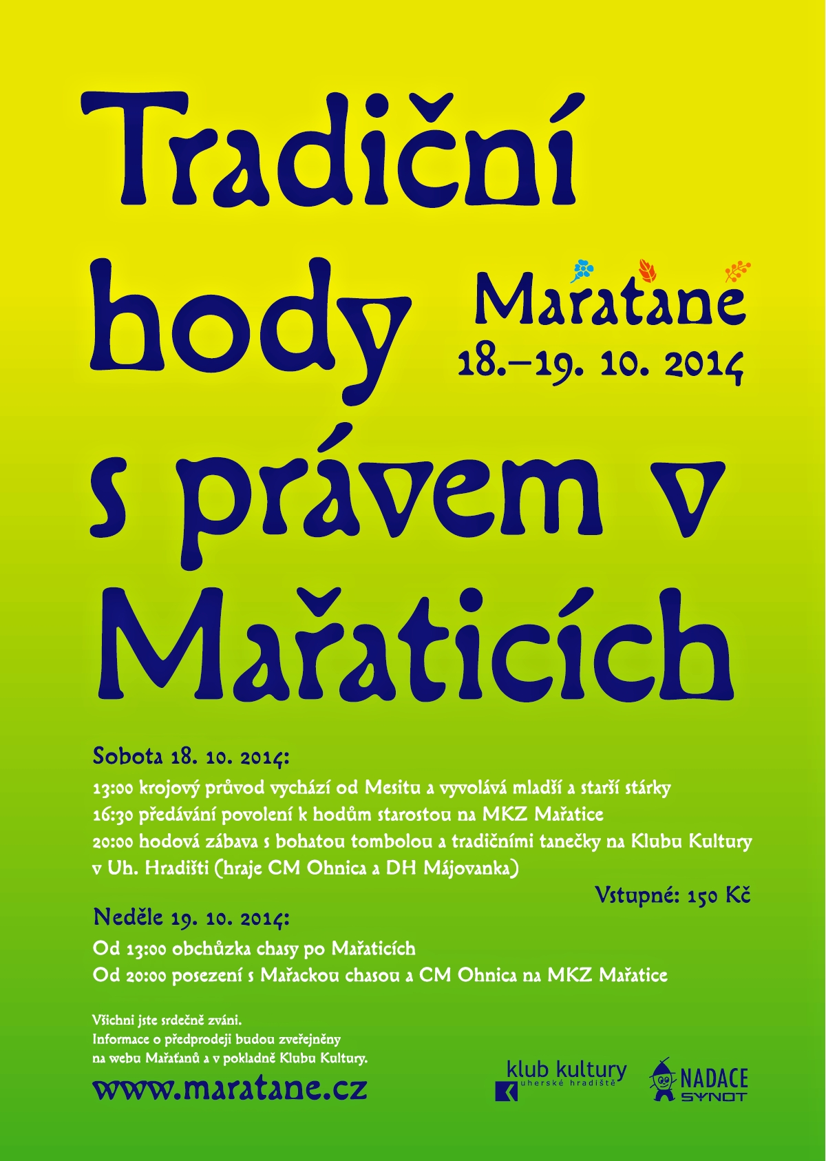 Omezené množství vstupenek bude k dispozici na pokladně Klubu kultury. Další informace o předprodeji budou zveřejněny na www.maratane.cz.